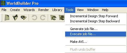When a job file has been created you can execute it on a local computer. Execution of job files does not require a licensed copy of World Builder. All that you need is to start WorldBuilder in the network mode. To do so: