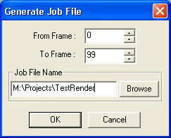 Click OK to generate the TestRender.job file (as shown in the figure above) and save it to the specified location (say, M:\Projects\TestRender.job).