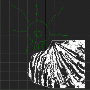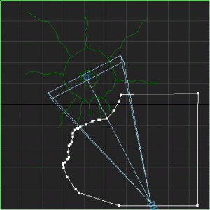 When seen from the Top viewport, we can observe how the Placement Conditions property effects the distibution of our trees (in this screenshot, the Camera and Parallel Light have been hidden to more clearly how the tree).