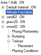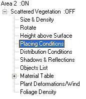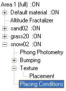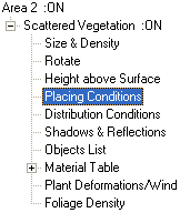 In Area2, select the Placing Conditions property for the scattered GrandFir 1 trees. At the top of the Property Page, select Copy from the Property Toolbar. This will ‘capture’ the settings for this property.