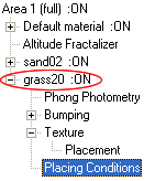Now select grass20 in Area 1 (full) and then select its Placing Conditions property. In the Property Toolbar click on Paste to apply the settings we copied from the Area2 Scattered Vegetation.