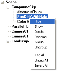 Note: To speed up rendering, the AltoStratusClouds2 and SunDiskWithHalo1 components have been hidden. They can be ‘unhidden’ at any time by right-clicking on them in the Scene Tree.
